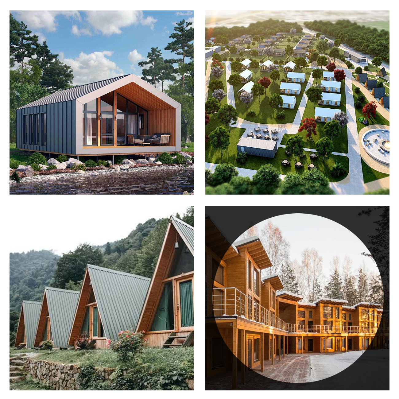 каркасные дома, дачи, базы отдыха, глэмпинги, парк-отели, малые архитектурные формы.